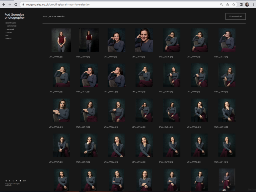 We love doing portraits and headshots and we’re sure you’ll enjoy your session and will get the images you require. After the session, all the best shots will be put on a private webpage for you to view and download, like this:
